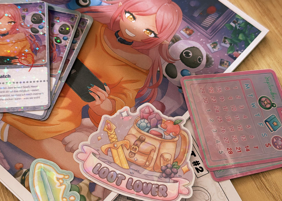 Wenn du selbst Content Creator, Vtuber oder Indie Developer oder ein ganz neues Gesicht mit einer Mission bist und eigenes Merchandise rausbringen möchtest, melde dich gerne bei mir und erzähl mir von deinen Ideen! Als unabhängiges Label, das Designs von Hand illustriert und produziert, weiß ich, wie wichtig Kreativität und Zusammenarbeit sind. Deshalb biete ich die Möglichkeit, eure Produkte auch in kleinen Auflagen umzusetzen, ohne riesige Mindestbestellungen oder Standardware von der Stange. nerdshit ist mehr als nur ein Shop.